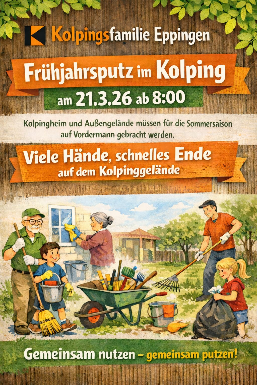 Wir wollen mit hoffentlich vielen unterstützenden Händen das Kolpinggelände und Kolpingheim fit für die Sommersaison machen.